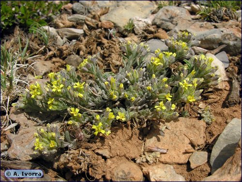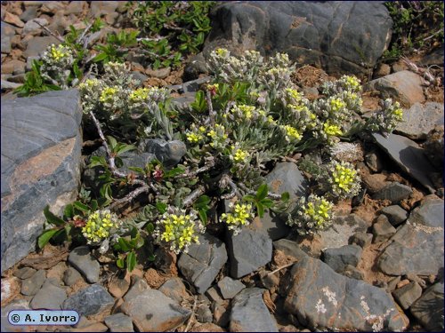 seminales por cavidad y estilo de unos 2 mm. Silícula latisepta, elíptica, de 5-6 x 4-5 mm, con valvas cubiertas de pelos