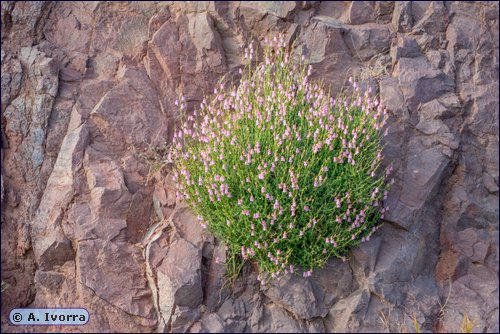 Vive en materiales volcánicos. Endemismo de los roquedos próximos al Cabo de Gata. La Vela Blanca, Barranco del Sabinar.