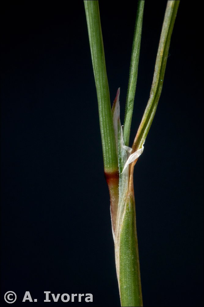 de un anillo hacia la mitad, con la parte inferior parda, la superior amarilla y de ápice marcadamente claviforme, que no sobrepasa a las glumas o las iguala. Pálea más corta que el lema.Lodículas membranáceas. Anteras amarillentas o violetas. Cariopsis poco comprimida.