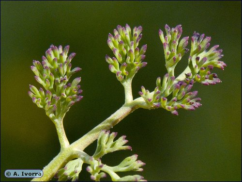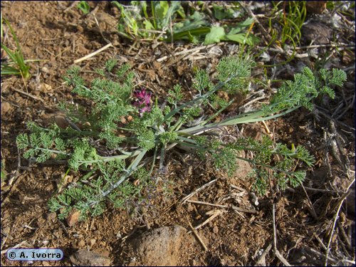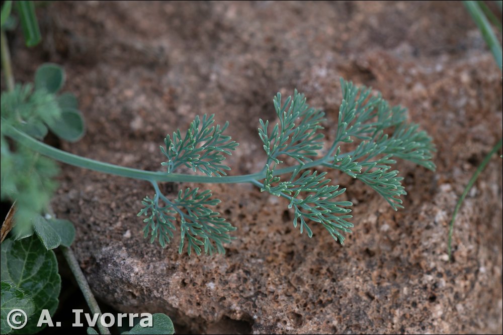 glabra. Hojas alternas, 2-4 pinnatisectas; últimas divisiones muy delgadas,