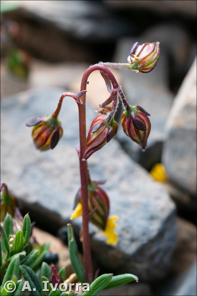 Planta perenne, hasta de 35 cm. Cepa leñosa, ramificada, con renuevos estériles cortos y foliosos y tallos floríferos ascendentes o erectos, foliosos en la base, glabros. Hojas opuestas, cortamente pecioladas, linear-lanceoladas o lineares, de margen revoluto, glabras, glaucas estípulas linear-lanceoladas. Inflorescencias bracteadas, simples, laxifloras botones florales ovoideos, de ápice retorcido. Flores actinomorfas, hermafroditas,