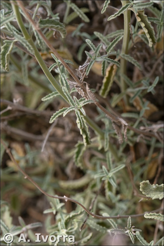 de porte. Tallos lanosos en la base, con pelos largos, hasta de 2,4 mm, más o menos flexuosos y patentes, a veces con pelos glandulíferos diminutos. Hojas hasta de 2