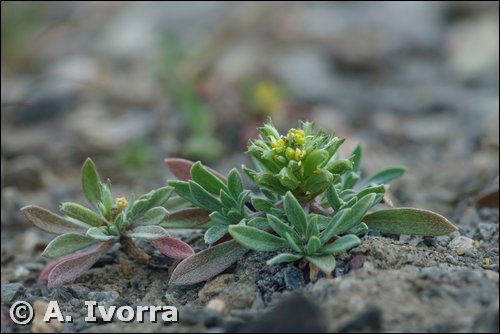 herbácea, anual, pluricaule, pubescente. Tallos ramificados, reptantes o ascendentes, hasta de 20 cm de