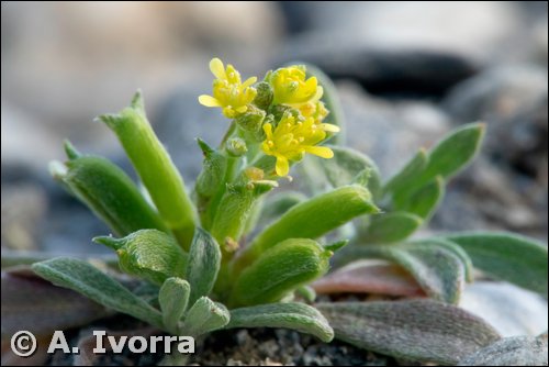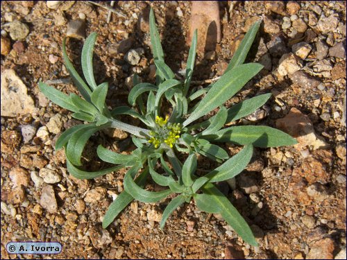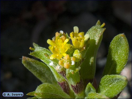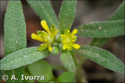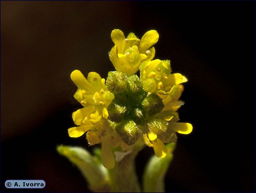x 4 mm. Flores amarillas, hermafroditas, actinomorfas, tetrámeras, dispuestas en