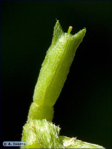 Pétalos libres, de unos 2 mm, que apenas sobrepasan a los sépalos. Androceo con