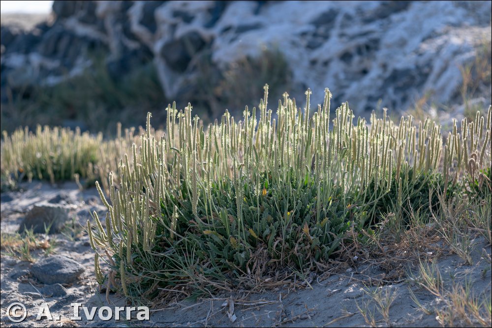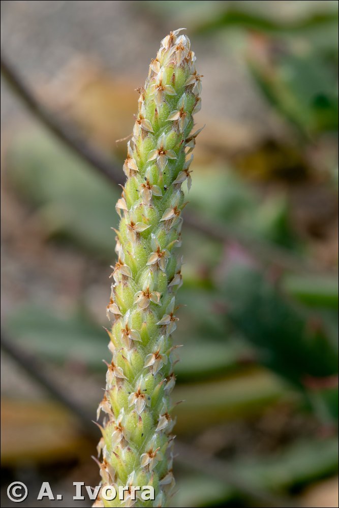 Hierba perenne, hasta de 100 cm, escaposa; cepa leñosa, gruesa, generalmente ramificada. Hojas dispuestas en varias rosetas basales, rosuladas, espatuladas, de dentadas a pinnatífidas, con lóbulos de disposición irregular, glabras o velutinas, crasas. Escapos cubiertos de pelos adpresos y antrorsos, con espiga terminal cilíndrica, densa. Brácteas ovado-acuminadas, de margen escarioso, ciliado. Flores tetrámeras, hermafroditas. Sépalos con margen