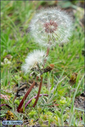 hastado; pecíolo purpúreo, áptero. Escapo de pardo a purpúreo, erecto,