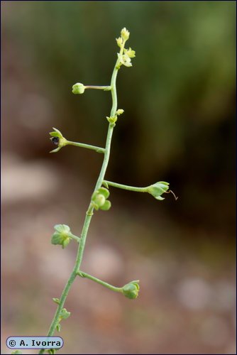 laxa, con pelos glandulíferos y tectores en el eje. Flores pediceladas,