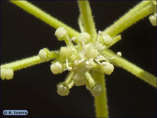 Anteras amarillentas. Estilopodio cónico estilos glabros, reflejos y de
