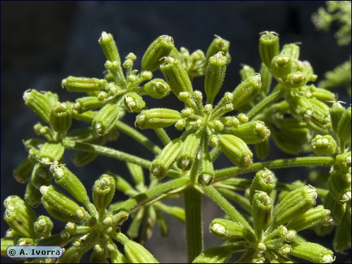 longitud similar a la del estilopodio. Frutos oblongos, densamente