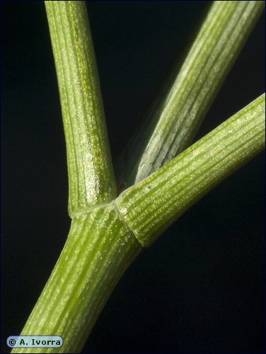 perenne, hasta de 90 cm, rizomatosa. Tallos ramificados en la mitad