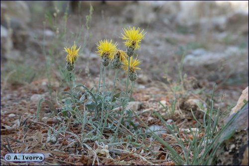 Hierba perenne, hasta de 45 cm. Vivaz, rizomatosa, blanco-lanuginosa. Tallos erectos, de sección circular, generalmente simples, a veces bifurcados, escapiformes, monocéfalos. Hojas densamente blanquecino-lanuginosas, la mayoría rosuladas, pinnatipartidas o pinnatisectas, a veces liradas, las basales pecioladas y las caulinares sésiles. Capítulos radiantes, terminales, solitarios. Involucro ovoideo; brácteas glabras o laxamente araneosas,