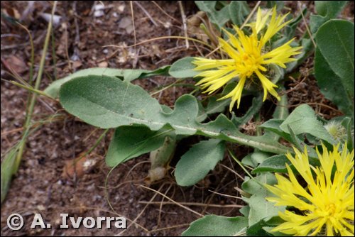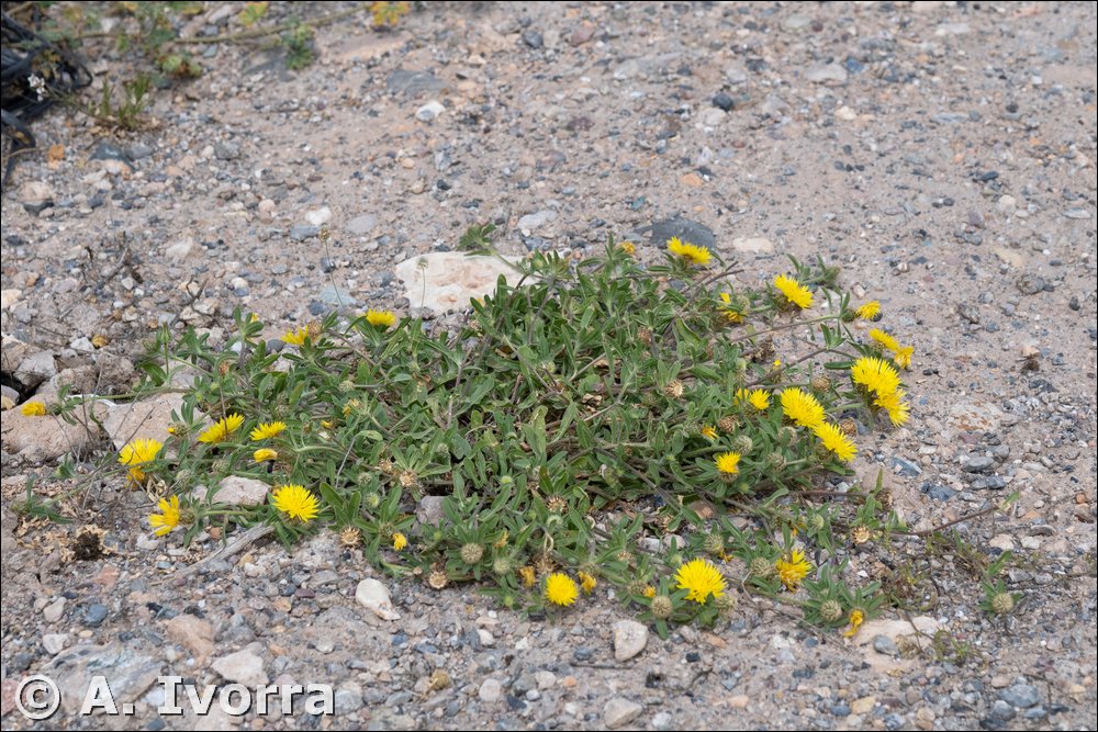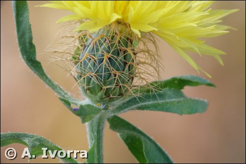 Hierba anual, hasta de 30 cm, a veces acaule, verde, vilosa. Tallos erectos, ascendentes o decumbentes, simples o ramificados desde la base. Hojas aglomeradas en la base, oblanceoladas o linear-lanceoladas, enteras, pinnatífidas o pinnatipartidas; las superiores sésiles. Capítulos terminales, solitarios. Involucro ovoide u ovoide-oblongo; brácteas glabras, verdes, las medias con apéndice apical patente o arqueado, no vulnerante,