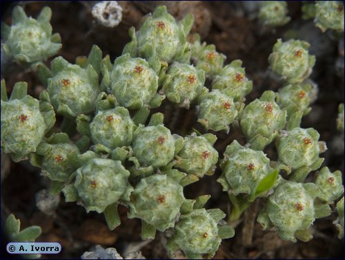 más largas que los capítulos. Capítulos disciformes, sésiles, de 2 a 15 en