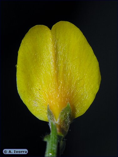 estandarte de 9-12 x 7-8 mm, ovado, emarginado. Androceo monadelfo, con 4