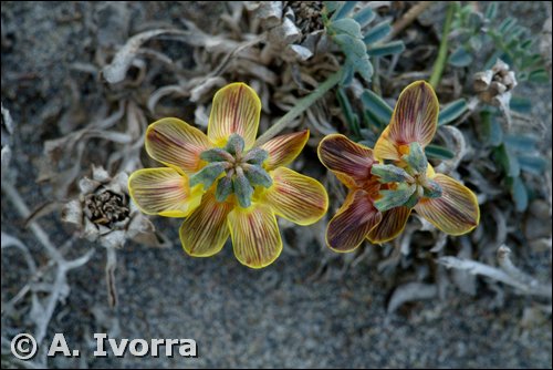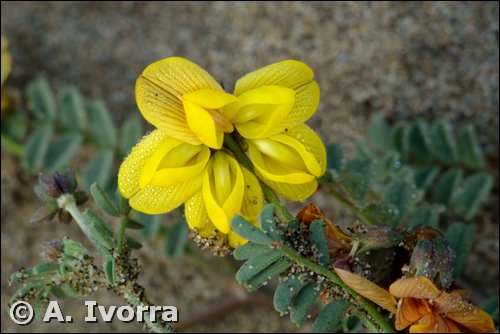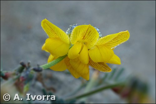 tubo más largo que los labios. Corola amarilla, con estandarte de 9-11 x 7-8
