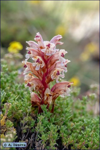 Vive en tomillares de Thymus serpylloides, Th. vulgaris (Labiatae). En zonas rocosas calcáreas, entre los 900 y 2300 m.