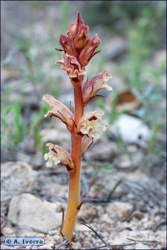 ápice, de un color blanco rosado a ligeramente rojizo. Labio superior bilobado,